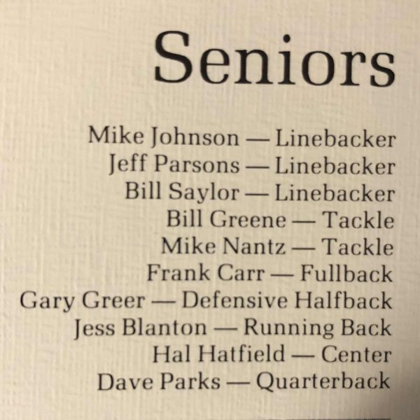 “It was a huge win. The coaches really had us prepared and talked about building tradition,” Hoskins said. “Frank Carr and I were the inside linebackers with Bill Saylor and Mike Johnson on the outside. Mike Nantz played tackle in front of me on defense, and the linemen had the responsibility of keeping people off us so could make tackles and they did a great job.”