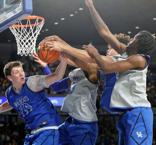 University of Kentucky sophomore forward Trent Noah, a 2024 Harlan County graduate, put up a shot in the Blue-White Game on Friday. The Cats will play their exhibition opener against No. 1-ranked Purdue in Rupp Arena on Oct. 24, with another preseason scrimmage against Georgetown University on Oct. 30 before the regular-season opener Nov. 4 against Nicholls.